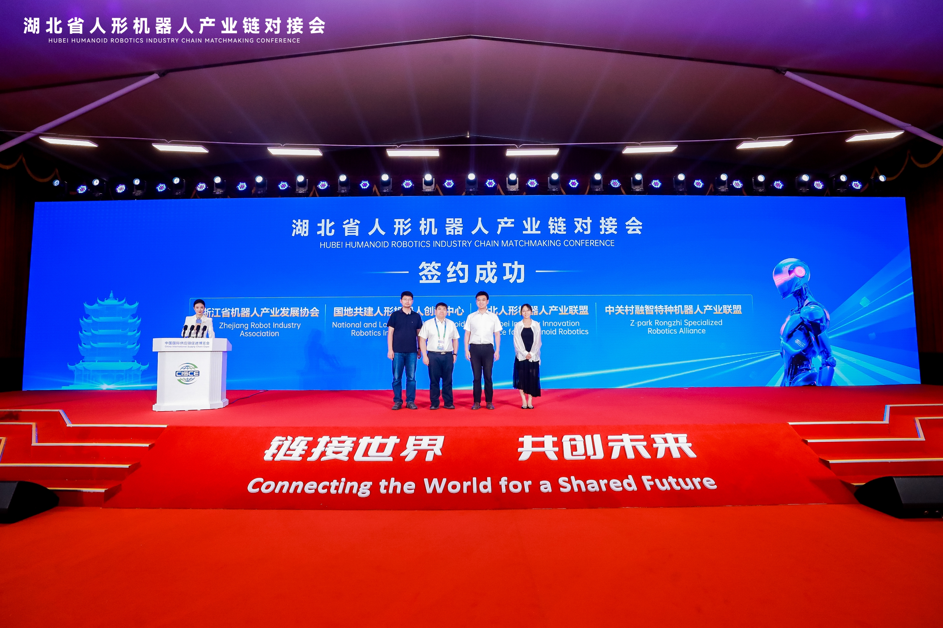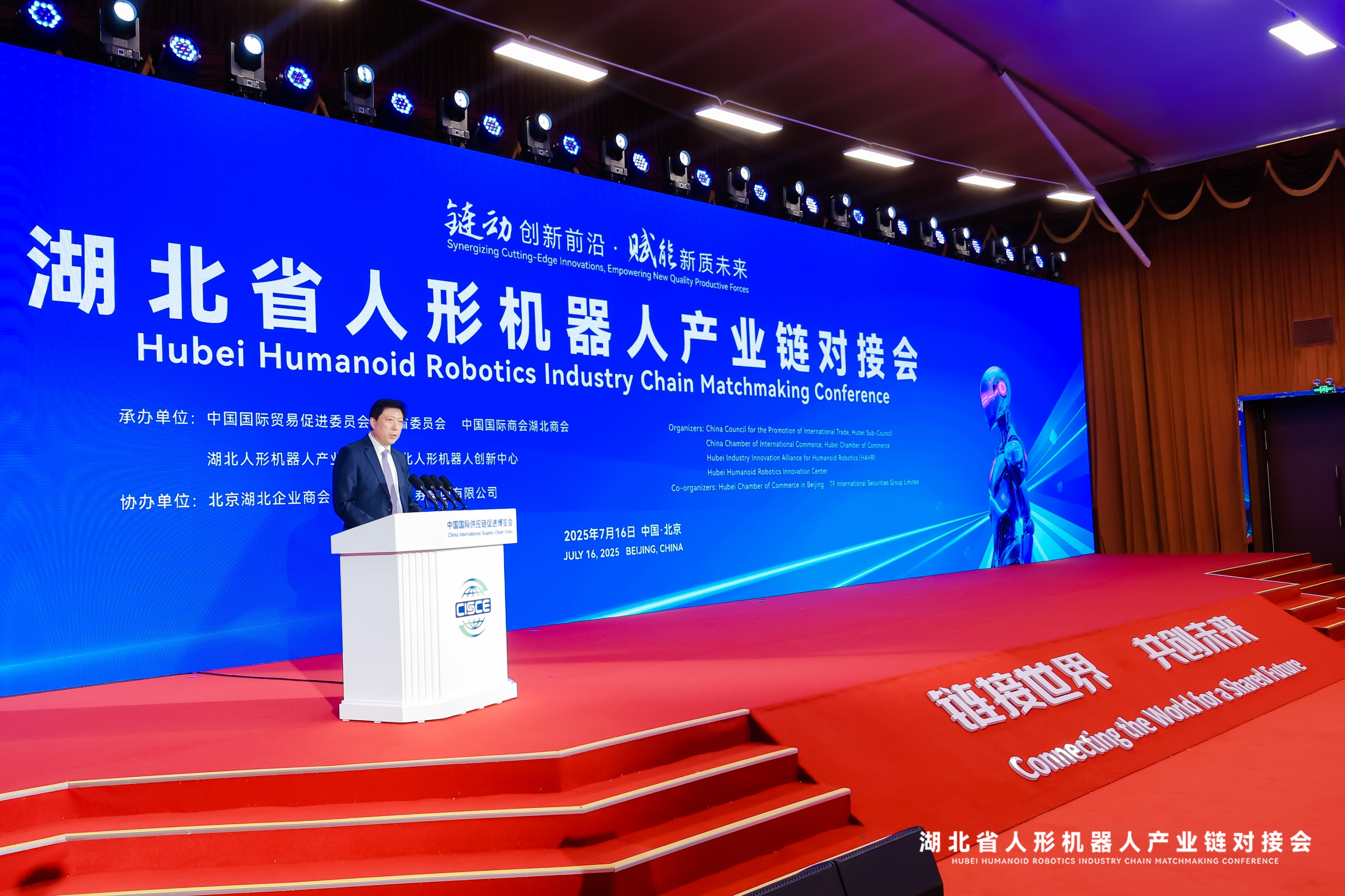 7 月 16 日下午,2025 湖北省人形机器人产业链对接会在第三届中国国际供应链促进博览会期间(简称 “链博会”)成功举行。本次对接会以 “链动创新前沿,赋能新质未来” 为主题,汇聚了驻华大使、院士专家、行业领军企业负责人、金融机构高管等400余人参会。通过领导致辞、嘉宾发言、重点推介、新品发布、战略合作签约等环节,全方位展现湖北人形机器人产业发展优势与潜力,推动产业链上下游精准对接,为全球人形机器人产业协同发展注入 “湖北动能”。