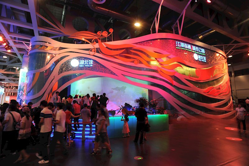 聚焦“城市,让生活更美好”的2010年上海世博会,是中国举办的首届世界博览会,7308万的参观人数创下了历届世博之最。湖北以“江湖连通、城市公园”为主题,建设面积达600平方米的湖北馆参展。展馆外观以古篆书“水”字为原型,以水流动的轨迹作为造型主线,展示城市、江湖和谐相处的荆楚画卷,生动再现了“千湖之省”湖北的优质、丰沛水资源状况,充分展现了湖北“上善若水”的精神内涵。湖北馆外观设计叠加“楚凤云翔”元素,将凤凰展翅的姿态与湖北馆外观融为一体,形象展示了湖北以公园模式建设新型城市的理念,突出表达了楚人崇凤、“凤鸣九天”的精神追求。7月18日开启的湖北活动周,广场演出、歌舞晚会、巡演踩街、非遗展示等活动,汇聚荆楚文化艺术精华,尽显荆楚文化深厚底蕴。湖北生态文化旅游资源招商引资推介会等一系列活动更是全方位地向世界宣传推介了湖北。