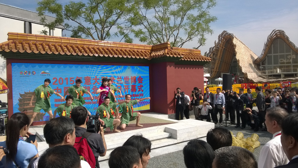 2015年意大利米兰世博会聚焦“农业、食品及可持续发展”,中国首次以自建馆形式赴海外参展。湖北以“生态湖北、绿色农业”为主题举行中国馆湖北日活动,湖北又一次站在世博会舞台上,这也是湖北第一次组织经贸代表团参加海外世博会。6月16日,中国馆湖北日正式拉开帷幕,土家摆手舞、汉绣、武当功夫、湖北美食等诸多湖北元素精彩亮相世博。中国馆入口处高2米的神农氏雕像寓意着湖北农业发展、农业文明的悠久历史;镶嵌在红色文化屏风中的图片集精彩展示了湖北风貌;极具特色的一个个湖北非物质文化遗产实物展台吸引了众多眼球;湖北厨师在午宴上现场制作热干面、豆皮、小面窝等特色美食让人交口称赞;文化团队在露天舞台的主题展演和世博大道的盛装巡演让世界惊艳。此次世博会,湖北省贸促会还组织了湖北省历年来规模最大的一次境外经贸行活动,150多家企业、270多人参加,先后在伦巴第大区、米兰、威尼托大区等地举办了10场商务对接交流。此次参展,充分展示了湖北的农耕文明文化、农业科技、湖北美食及生态旅游资源,全面提升了湖北在国际上的影响力,推动了湖北与世界各国的经贸文化交流合作。