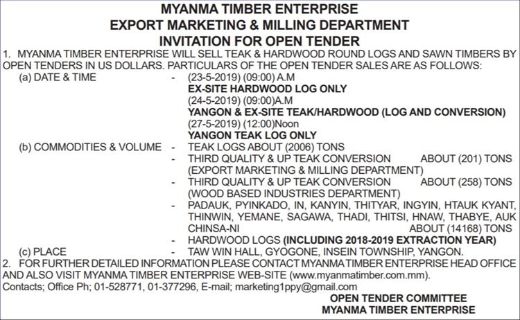5月24日上午9点:仰光及交货地 柚木/硬木(原木及锯材)