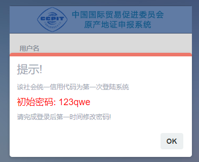 首次登录直接输入“统一社会信用代码”,点击登录会显示初始密码: