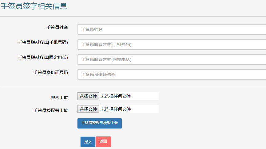 点击“新建手签员”,填写相关信息,下载手签员授权书填写后提交。