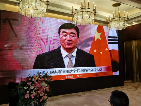 Chinese Ambassador to Republic of Korea, Mr. Xing Haiming delivers a speech via video.