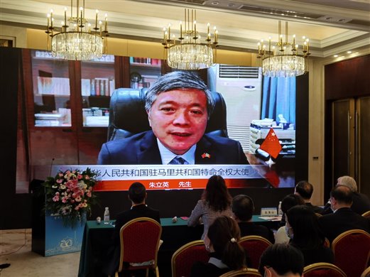Chinese Ambassador to Mali, Mr. Zhu Liying delivers a speech via video.