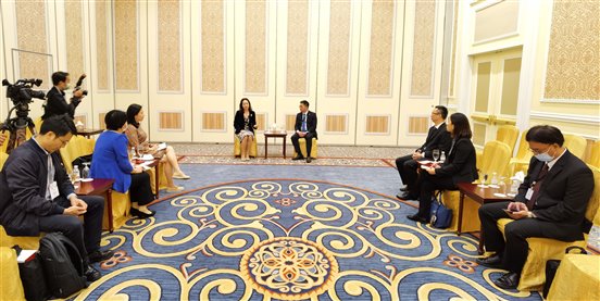 President Zhang Xiaomei communicated with Ms. Maria Gustava, Ambassador Extraordinary and Plenipotentiary of Mozambique to China.