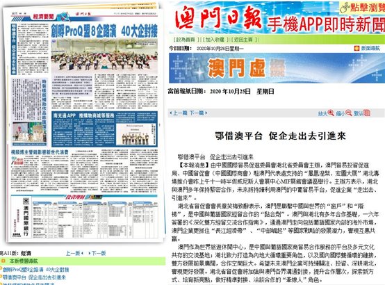 This visit has enabled us to consolidate friendship, make new friends and learn more about advanced concepts of Macao’s hosting green exhibition, which lays a solid foundation for Hubei strengthening economic and trade cooperation with Macao and Portuguese-speaking countries in dual circulation. Mainstream media, such as Macao Daily covers the trip.