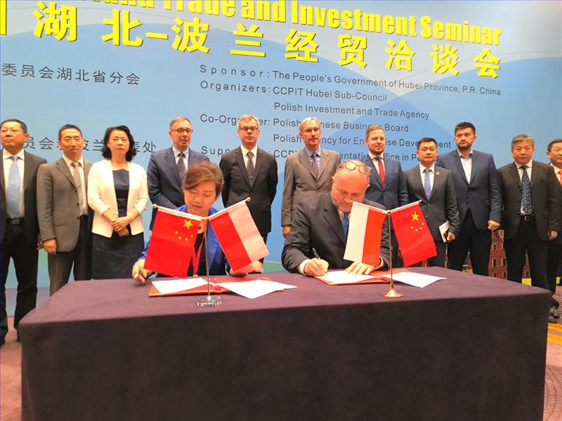 60 Hubei enterprises, mainly in energy, agriculture and food, equipment manufacturing, electronic information, light industry and building materials, automotive, chemical and other industries, made their appearances in Poland. More than 250 people attended seminar.After the speech, CCPIT HUBEI and Polish China Business council signed a memorandum.