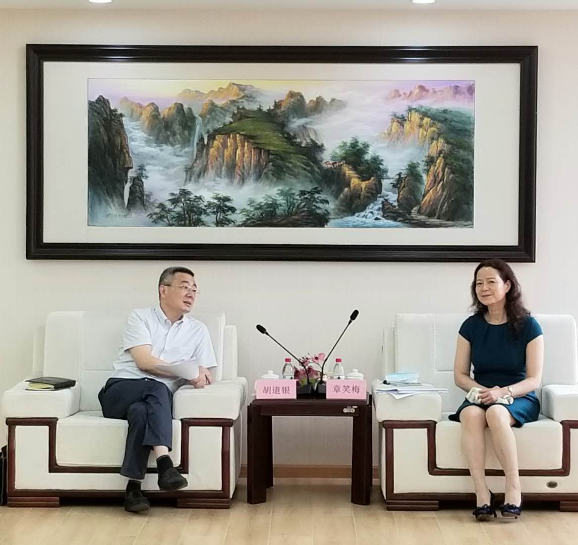 On August 19, President Zhang Xiaomei met with Mr. Hu Daoyin, Director-General of Hubei Geological Bureau.