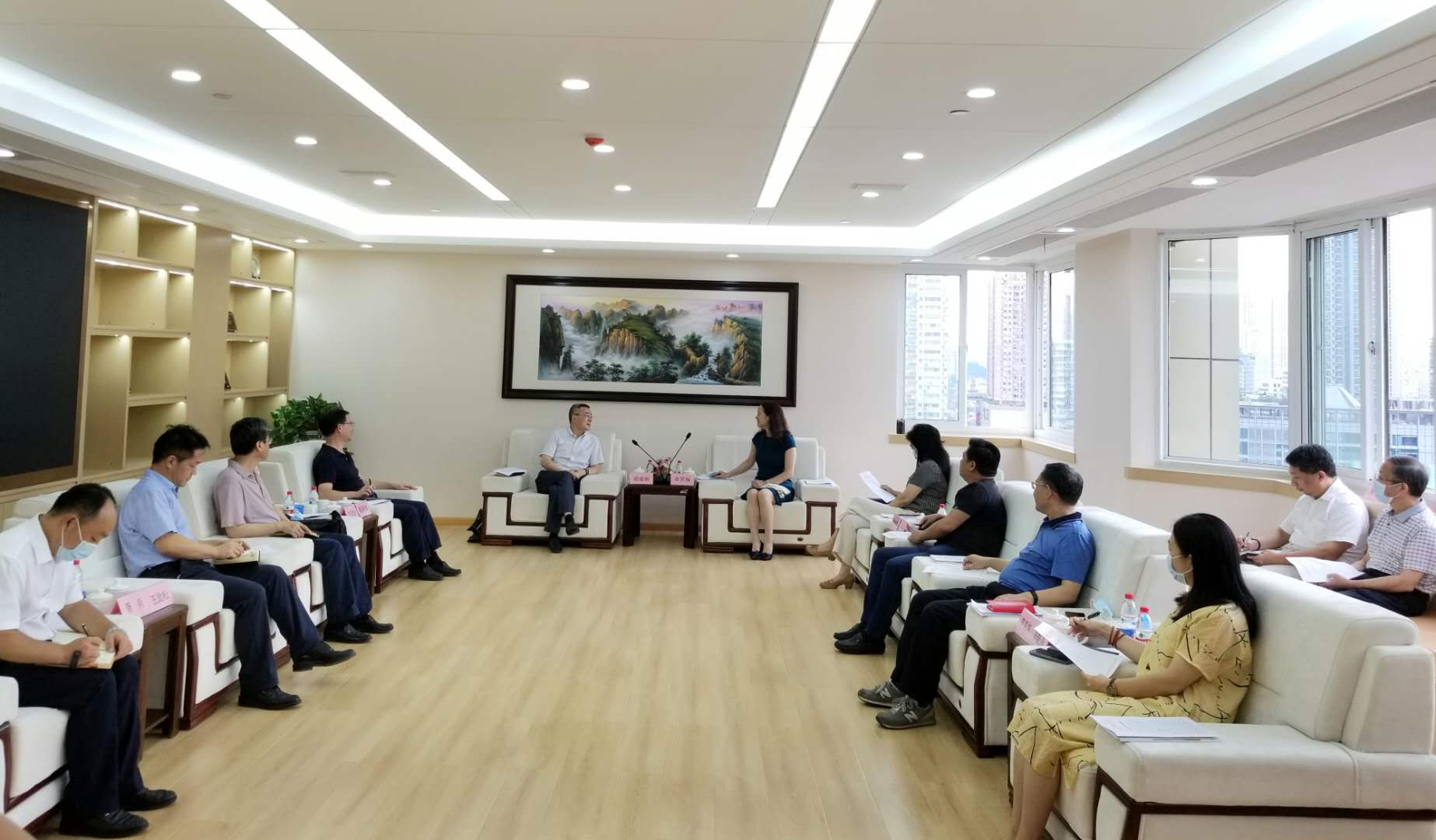Mr. Xiong Baocheng, Chief Engineer of Hubei Geological Bureau, Mr. Liu Jingsong, Director of Quality Supervision Division, Mr. Wang Jingsong, Principal of Hubei Institute of Urban Geological Engineering, Ms. Liang Junjun, Vice President of CCPIT Hubei, Mr. Wang Rong, Associate Counsel and heads of AdministrativeOffice, Foreign Relations Department,International Exhibition Department and Legal Affairs Department attended the meeting.