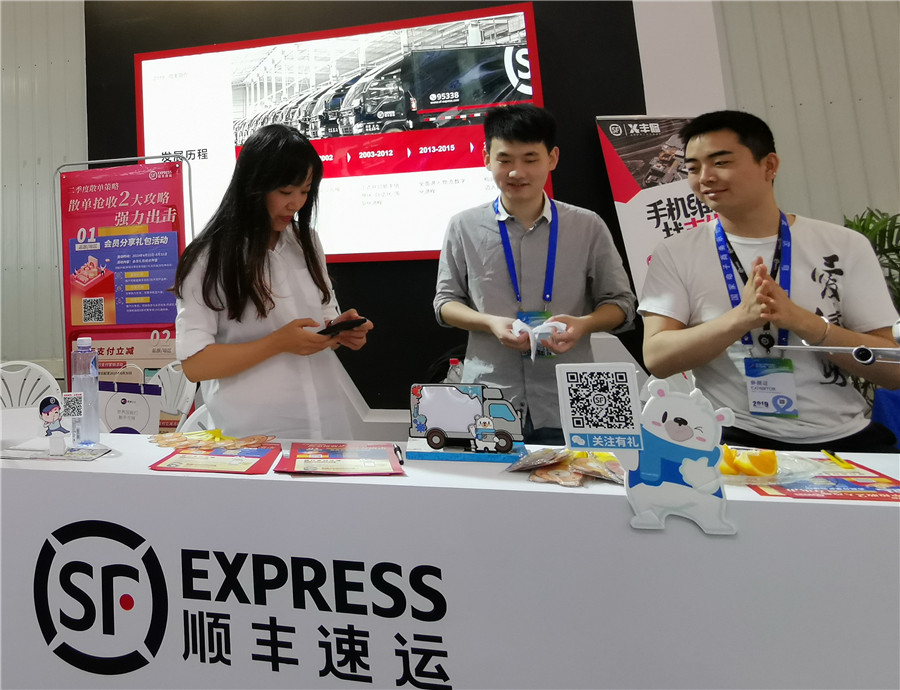 The booth of delivery giant SF Express during an industry expo in Wuhan, capital of Hubei province. [Photo by Chu Lin/For China Daily]
