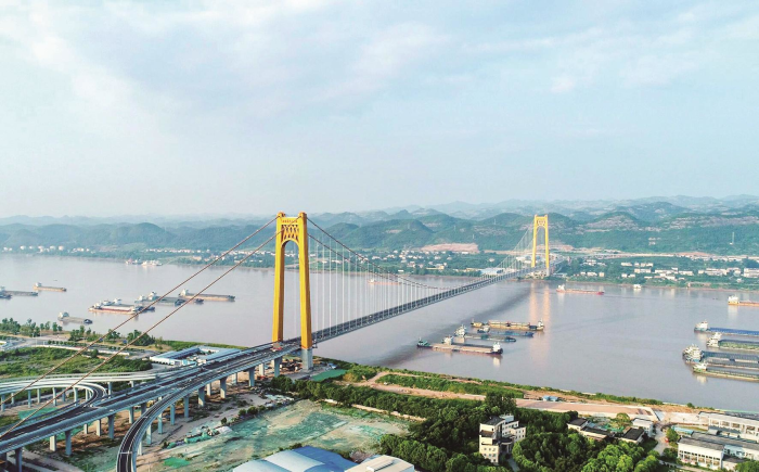 Aerial photo taken on July 30, 2021 shows the Wujiagang Yangtze River Bridge in Yichang, central China's Hubei Province. The bridge opened to traffic on July 30, witnessing the number of completed bridges over the Yangtze River in Hubei increase to 36. The suspension bridge stretches 2.8 km in total length, with a 1,160-meter-long main span. It has six lanes with a designed speed of 80 kph. (Photo: Chutian Metropolis Daily)