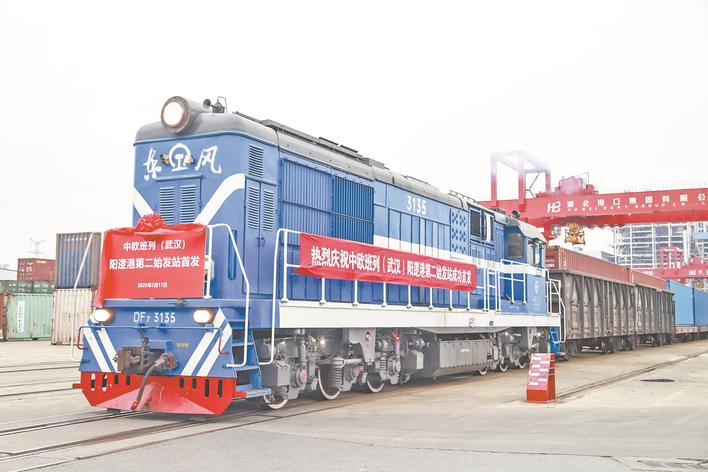The Yangluo Port hasbecome the second departure station of theChina-Europe (Wuhan) freight trains afterWujiashan station.